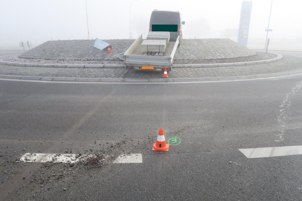Może i hamulce miała, ale za bardzo hamowana nie była… A ciągnące przyczepę Vito zatrzymało się dopiero na nasypie ronda.