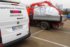 Inspektorzy zwrócili uwagę na niezabezpieczenie przed przemieszczeniem przewożonego na otwartej skrzyni towaru podejrzewając też przekroczenie DMC pojazdu.