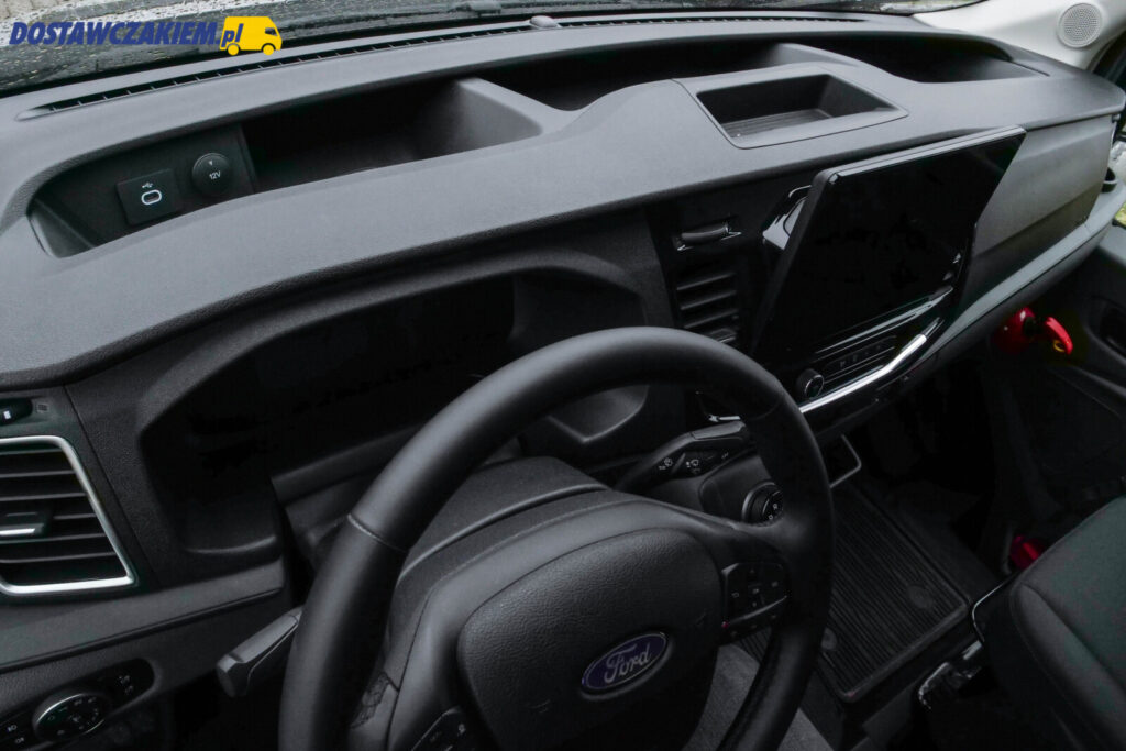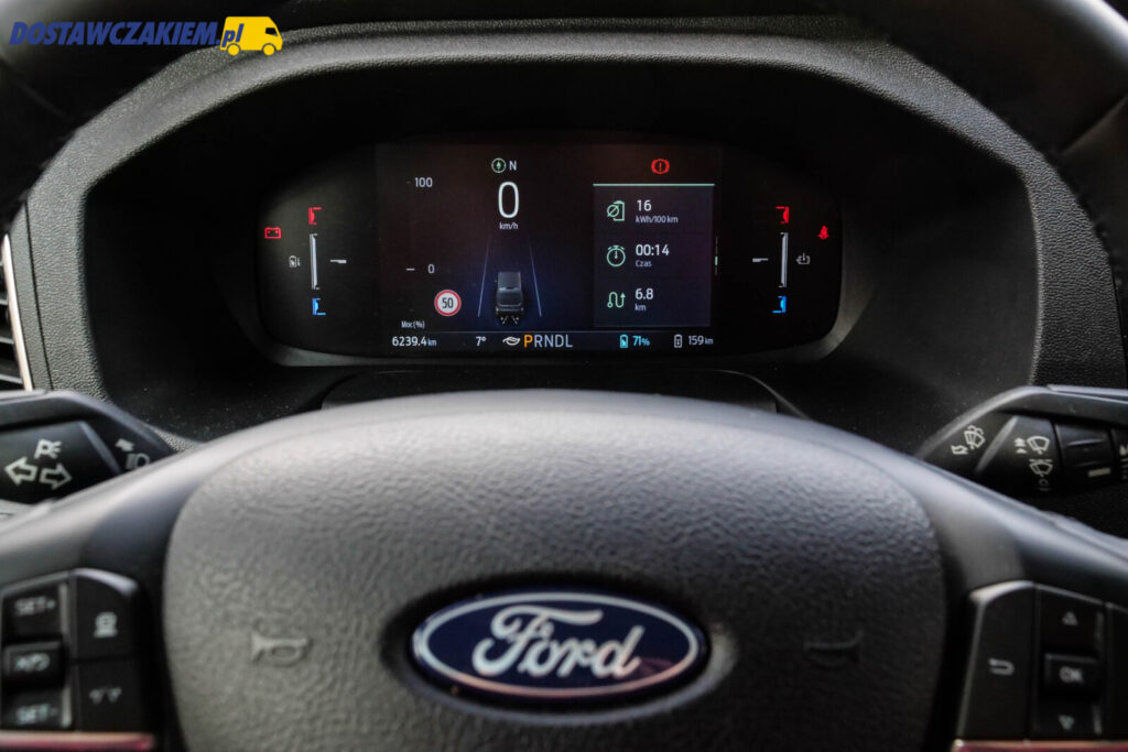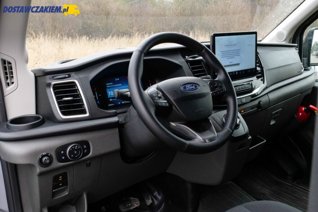 Przez 3-tygodniowy okres, kiedy miałem do dyspozycji elektryczną „blaszkę” Forda utwierdziłem się w przekonaniu, że „duży” Transit posiada wygodną kabinę a kierowca łatwo znajdzie wygodną dla siebie pozycję.