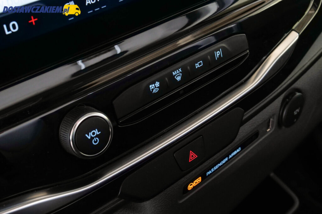 Na liście wyposażenia seryjnego znajdziemy także skórzaną kierownicę z regulacją w dwóch płaszczyznach, czujniki parkowania z przodu i z tyłu wraz z kamerą cofania, winylową podłogę w ładowni wraz z oświetleniem paki czy prawe przesuwne drzwi oraz tylne dwuskrzydłowe drzwi otwierane do kąta 90° z blokadą oraz po zwolnieniu tejże blokady do kąta 236°.