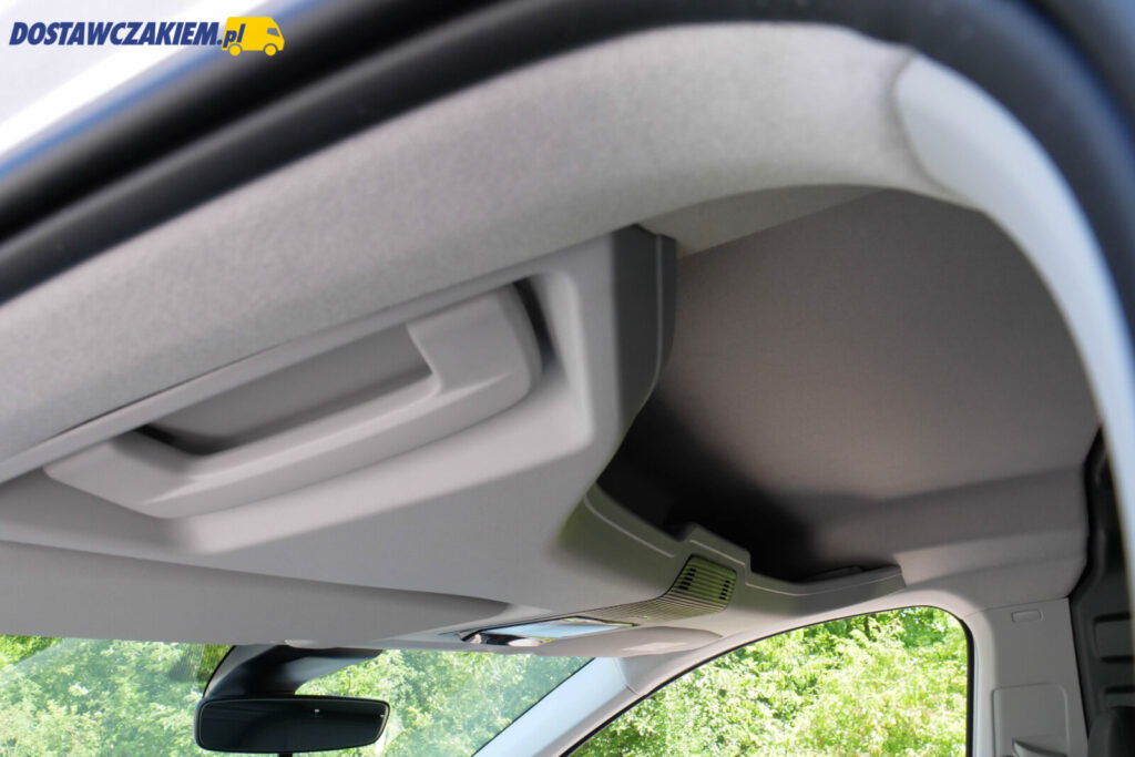 W środku rozplanowano sporo miejsca, gdzie możemy poupychać różne przydatne akcesoria. Wersja Trend oferuje bez dopłaty np. półkę podsufitową, gdzie zmieści się kilka pasów transportowych czy po prostu polar czy koc albo apteczka.
