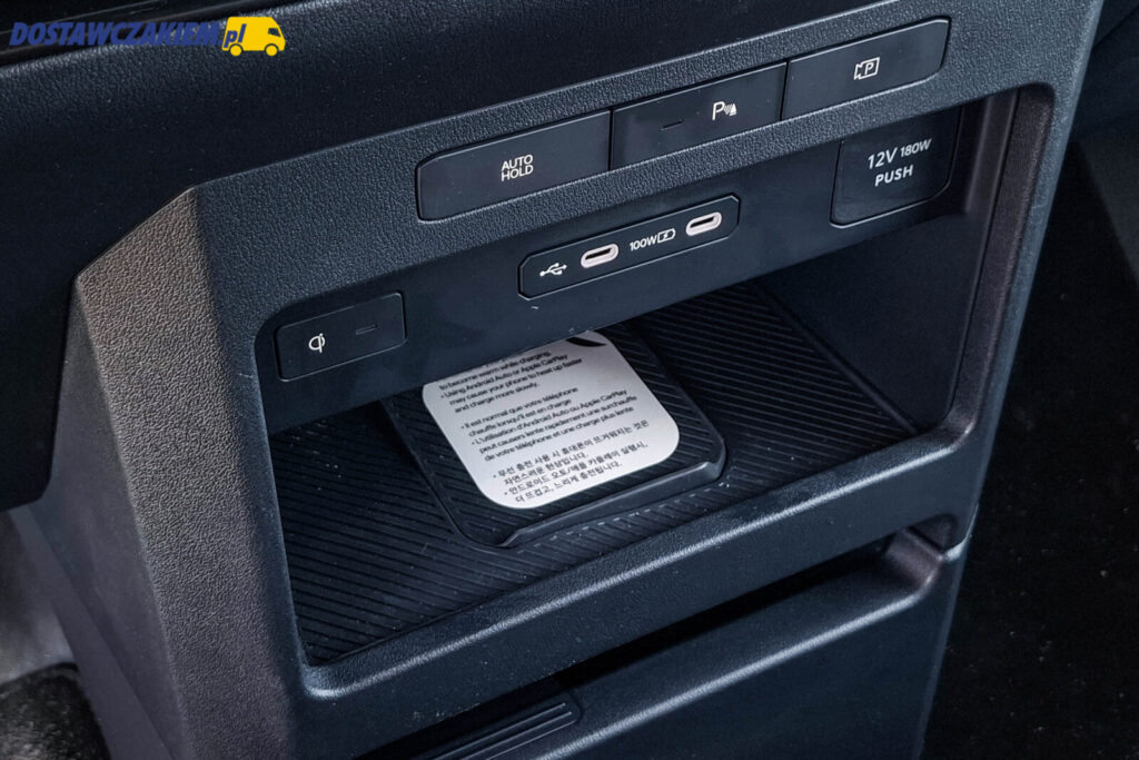 Chociażby dwa porty USB-C o mocy 100W oraz gniazdo 12V, aktywny tempomat z funkcją Stop & Go wraz z ogranicznikiem prędkości czy schowek pod fotelem kierowcy i pasażera oraz kolejne schowki zamykane pod podłogą kierowcy i pasażera.