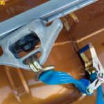 System ten składa się z trzech ruchomych punktów mocujących, które znajdują się na szynach na obu bocznych oraz przy frontowej ściance skrzyni. Aby dostosować punkt mocowań – do m.in długości pasów transportowych czy do gabarytów przewożonego przez nas agregatu prądotwórczego lub zagęszczarki – wystarczy odkręcić czarne pokrętło i ustawić uchwyt systemu C-Chanel w odpowiednim miejscu na specjalnej szynie.