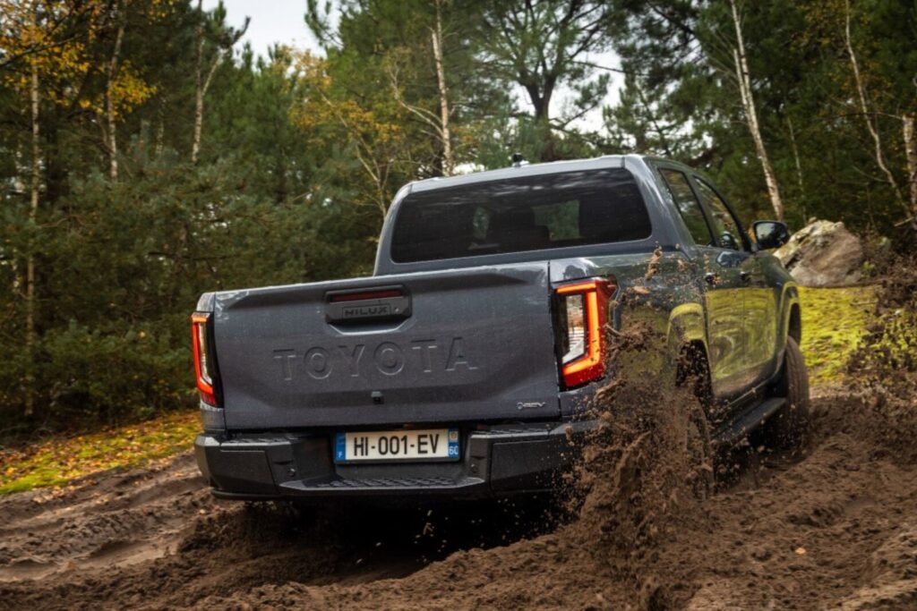Z kolei elektryczna odmiana Hiluxa otrzyma litowo-jonowy akumulator trakcyjny o pojemności 59,2 kWh. Układ e-Axle oferować ma stały napęd 4×4, z czego na przednią oś trafiać ma do 205 Nm oraz do 268,6 Nm na tylną oś.