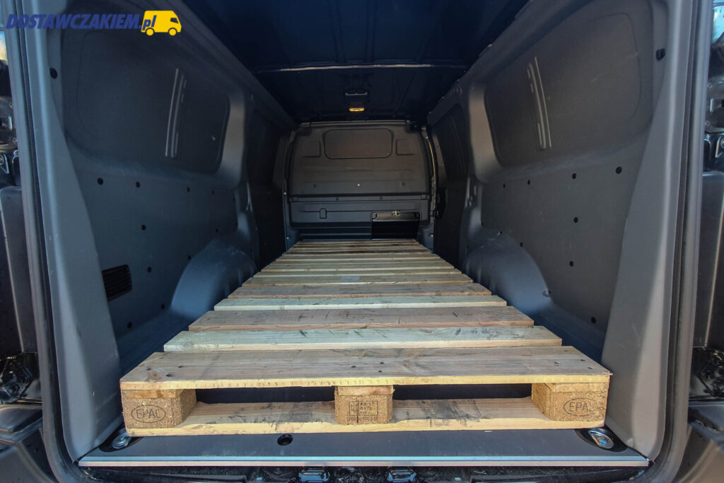 Po podłodze długość ładowni to 2862 mm, jednak trzeba mieć świadomość, że przegroda w dolnej części wchodzi w stronę kabiny pasażerskiej, więc jakby mierzyć od ściany grodziowej do zamkniętych drzwi mierzona w połowie ich wysokości, to wychodzi już tylko 2560 mm.