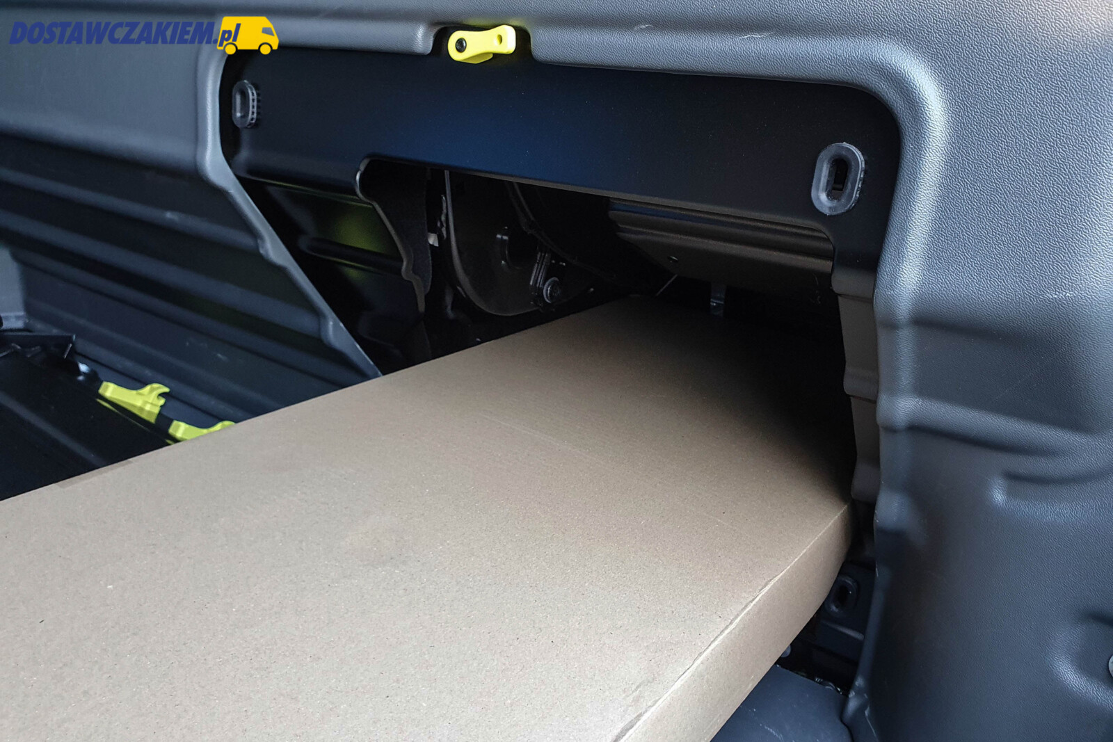 Dzięki temu można zwiększyć pojemność paki o kolejne 0,5 m3 a także pozwala to przewozić dłuższe przedmioty. Po zdjęciu klapy i uniesieniu siedziska pasażera załadować można blisko 4 metrowe elementy typu rury czy profile.