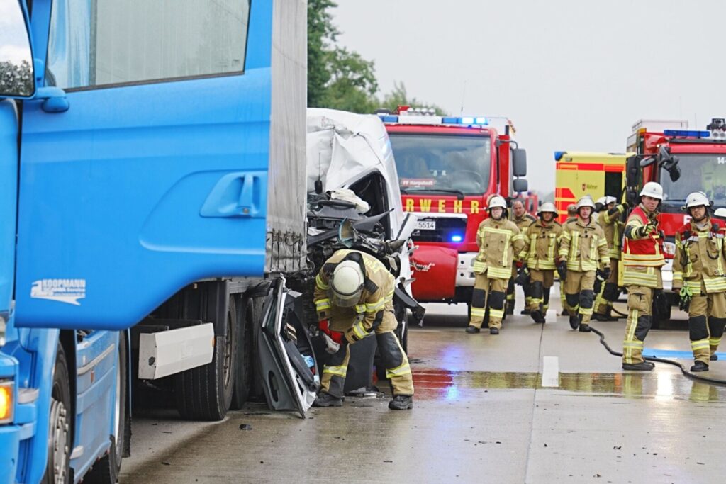 Najpierw doszło w tej okolicy do kolizji trzech ciężarówek, ale w wyniku tego incydentu nikt nie odniósł obrażeń, ale na trasie A1 powstał olbrzymi korek, który sięgał daleko poza węzeł Stuhr.