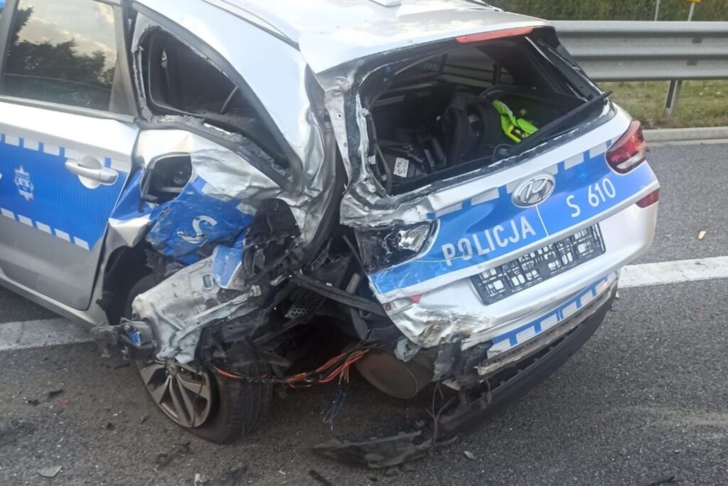 Na miejscu pojawiły się służby w tym policyjny radiowóz obsługujący tę stłuczkę, w której nikt nie ucierpiał. Niedługo później, bo przed 18:00, w policyjnego Hyundaia i30 wjechał jadący w stronę Kielc dostawczy Ford Transit.