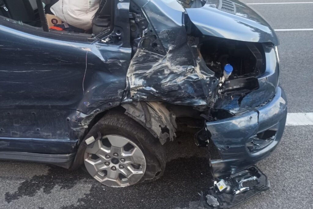 Tam na wysokości Góry Pogorzelskiej uszkodzona została przyczepa kempingowa ciągnięta przez Opla oraz dostawcze Renault Express Van.