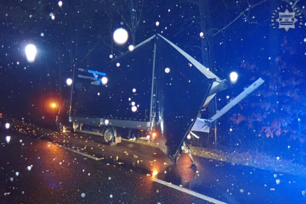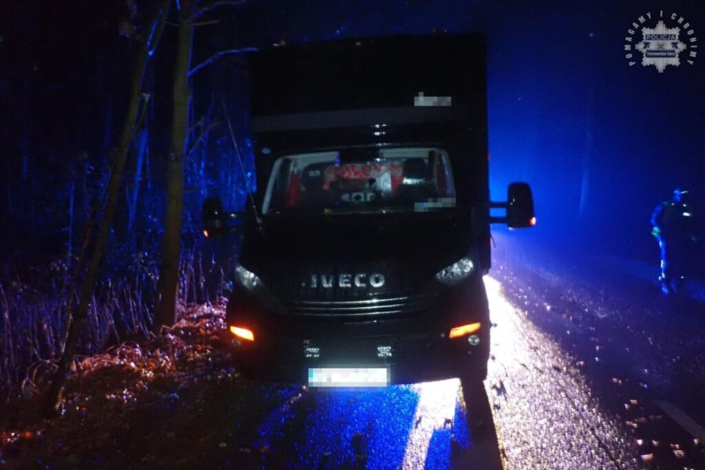 W czwartek 14 listopada policjanci z Tarnowskich Gór (woj. śląskie) po godzinie 21:30 otrzymali zgłoszenie od zaniepokojonego świadka, który widział, jak na ulicy Pyskowickiej w Połomii „międzynarodówka” na podwoziu Iveco Daily zjechała z drogi doprowadzając do zderzenia zabudowy pojazdu z drzewem.