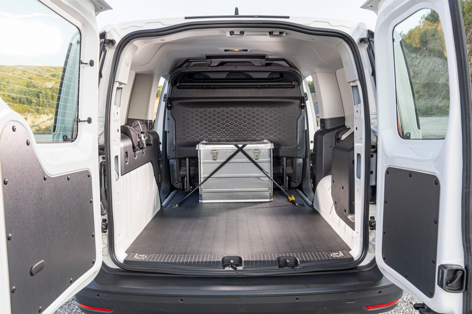W przypadku Caddy Flexible Maxi zmieszczą się dwie palety jedna za drugą a dostęp do przestrzeni ładunkowej można uzyskać przez drzwi przesuwne z prawej i lewej strony. Opcjonalnie można zamówić tylną przestrzeń ładunkową z przeszkleniem lub metalowymi panelami.