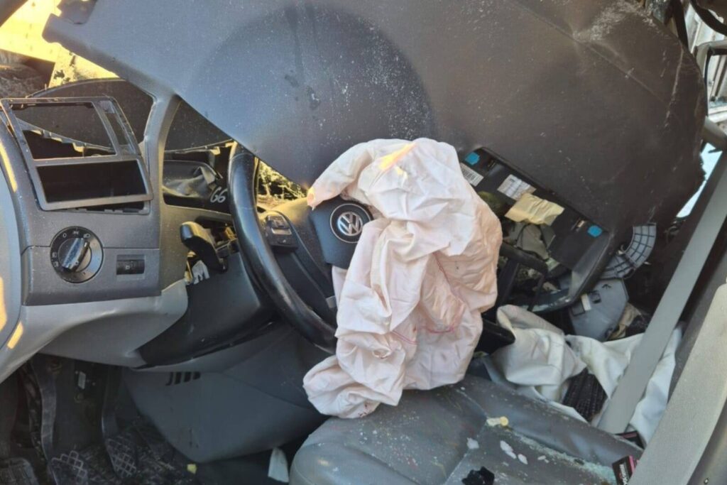Około godziny 14:00 kierowca furgonu najechał na tył naczepy. Szczęśliwie mężczyzna jechał Transporterem sam, bo gdyby ktoś siedział na miejscu pasażera w „T5-tce” raczej nie wyszedłby z tego cało.