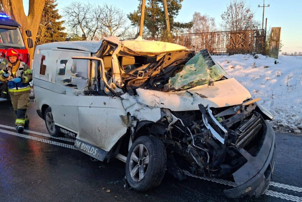 Kierowcy dostawczego Volkswagena Transportera nic się nie stało, więc też można mówić tutaj o sporym szczęściu w nieszczęściu.