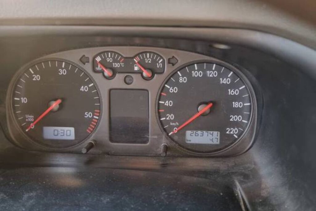 Również i w tym wypadku mamy tutaj aluminiową ramę i najazd Baldinger Fahrzeugbau. Zatem bazą jest Transporter z 1999 roku a przebieg 263 000 km (widoczny zarówno na zdjęciu licznika, jak i w opisie ogłoszenia, jest wręcz symboliczny przy znanej z trwałości jednostce 2.5 TDI o mocy 102 KM.