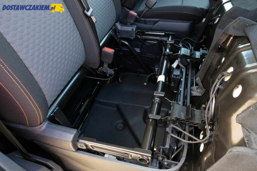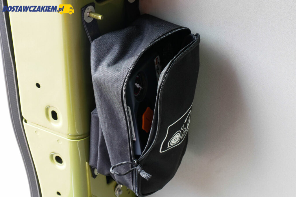 A gdzie są haczyki na kurtkę czy kamizelkę? Nie ma! W naprawdę wysoko wycenionym egzemplarzu tym bardziej szokuje, że kierowca czy pasażer nie ma gdzie powiesić „kufajki” :/ Choć trzeba doprecyzować, iż stalowa przegroda od strony kabiny jest tapicerowana, lecz to dodatkowo płatna opcja (490 zł netto).