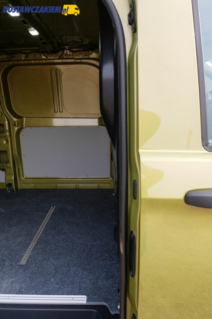 Standardowo furgon wyjeżdża z tureckiej fabryki z prawymi przesuwnymi drzwiami – szerokość otworu drzwi przesuwnych to 1030 mm, natomiast wysokość to z kolei 1301 mm. Szerokość tylnego otworu ładunkowego po otwarciu tylnych dwuskrzydłowych drzwi dochodzi do 1400 mm a jego wysokość to 1316 mm. Jakby kogoś interesował montaż „galeryjki” na dachu, to trzeba pamiętać, że jego dopuszczalne obciążenie nie może przekraczać 170 kg.