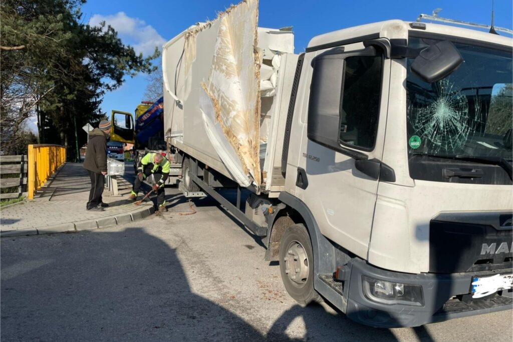 Najpierw kierująca 12-tonowym MAN-em TGL zignorowała albo nie zauważyła aż trzech znaków B-16 zakazujących wjazdu pod wiadukt kolejowy pojazdom wyższym niż 2,5 metra, czym doprowadziła do uszkodzenia zabudowy „solówki”.