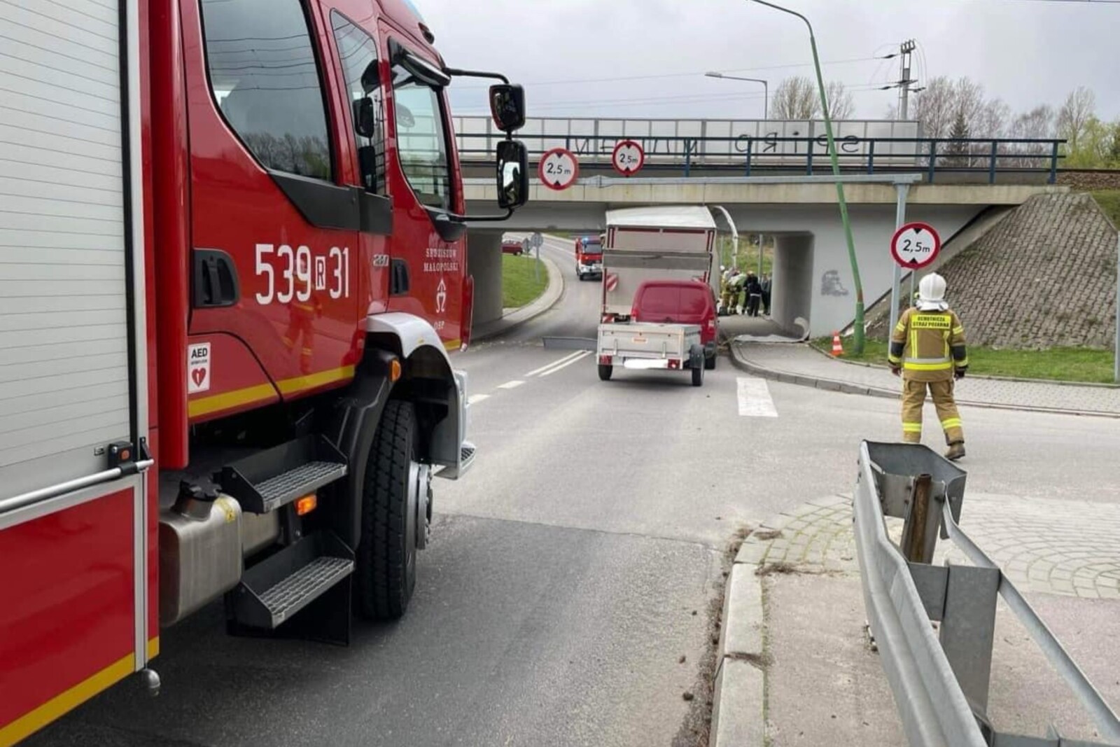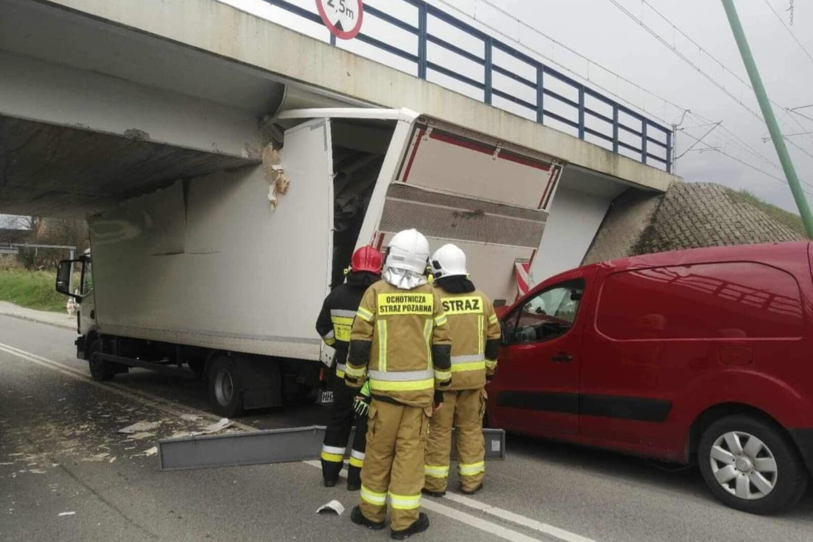 Najpierw kierująca 12-tonowym MAN-em TGL zignorowała albo nie zauważyła aż trzech znaków B-16 zakazujących wjazdu pod wiadukt kolejowy pojazdom wyższym niż 2,5 metra, czym doprowadziła do uszkodzenia zabudowy „solówki”.