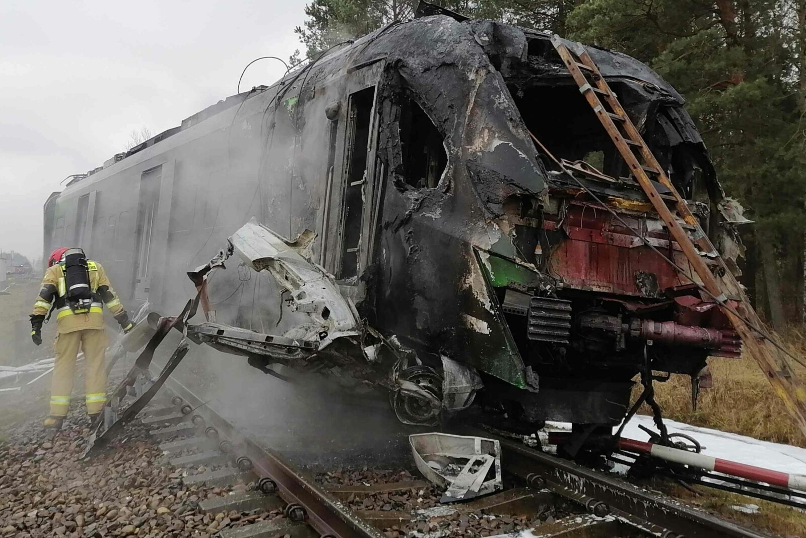 Siła uderzenia była tak duża, że Jumper został rozerwany na części z czego część wbiła się w przód szynobusa, który zapalił się zaraz po wypadku.
