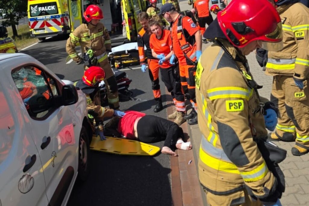 Wstępne ustalenia mówią o tym, że prowadzący dostawczą Toyotę Proace City wjechał na „zebrę” na czerwonym świetle.