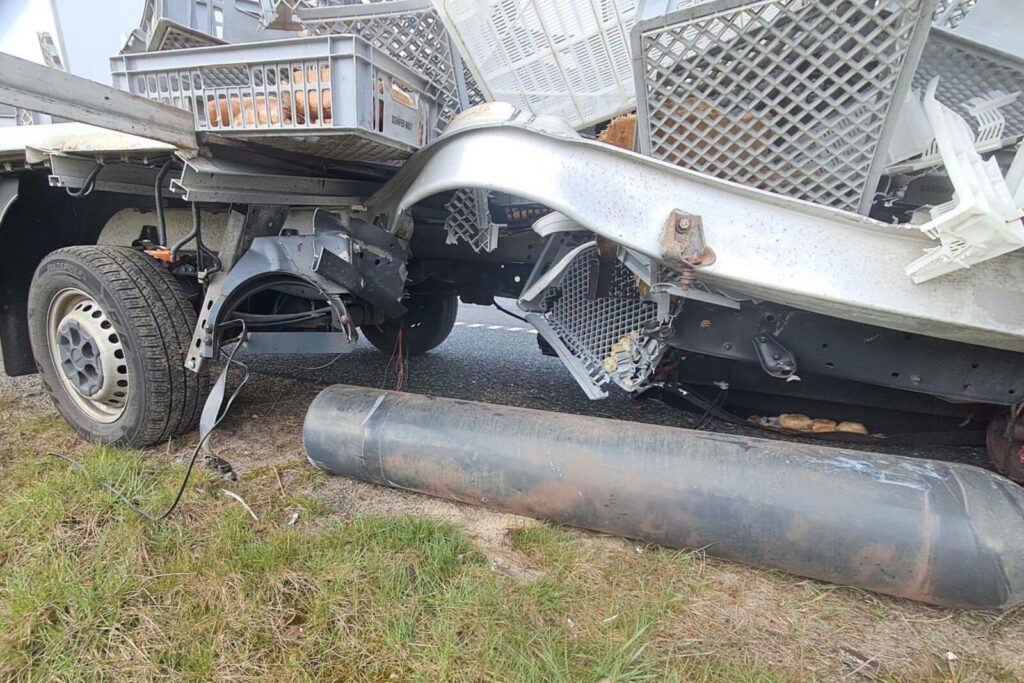 Okazało się, że podczas jazdy „ekspresówką” wybuchła butla ze sprężonym gazem ziemnym zamontowana pod podwoziem, która niemal doszczętnie rozerwała kontener. Eksplozja rozerwała ramę nośną „Dajlaka” i mocno uszkodziła niemal całą prawą stronę zabudowy kontenerowej a na drogę wypadły skrzynki z przewożonym pieczywem.