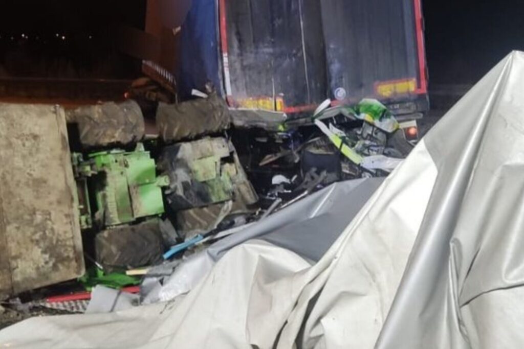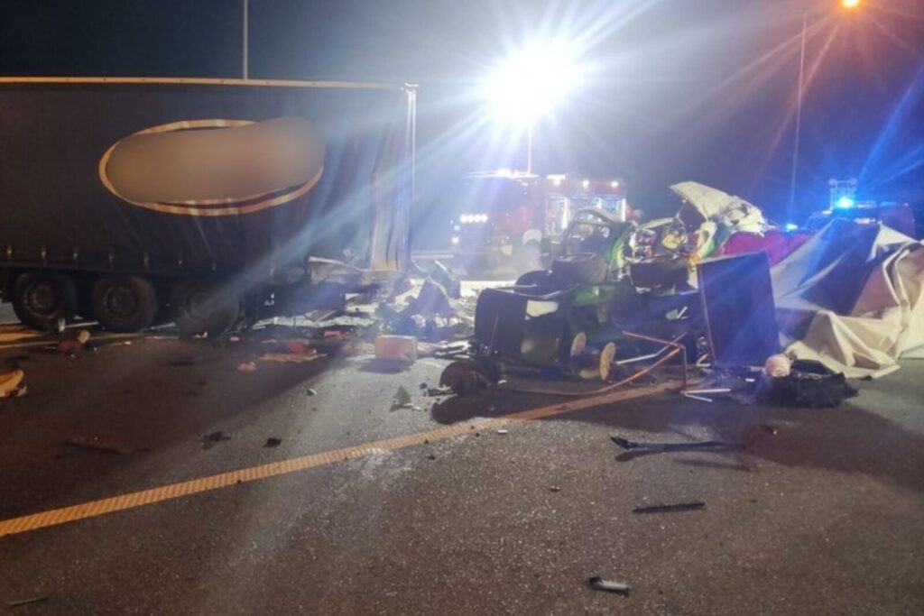 Tragiczny wypadek na „A1-ce”. Zmarł pasażer autolawety a kierowca został ciężko ranny. Wszystko zaczęło się od manewru 40-tonowego zestawu.