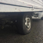 W niebieskiej doce doszło do wystrzału lewej tylnej opony a policjanci zwrócili uwagę, że tylna opona po prawej stronie Citroena Jumpera wykazywała zauważalne oznaki zużycia.