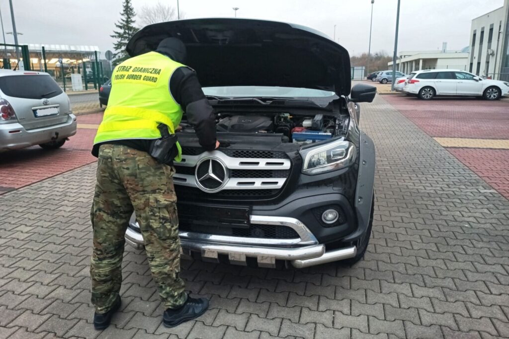 Na przejściu granicznym w Zosinie zatrzymano Mercedesa klasy X. Skradziony pick-up miał podrobione tablice i sfałszowane dokumenty.