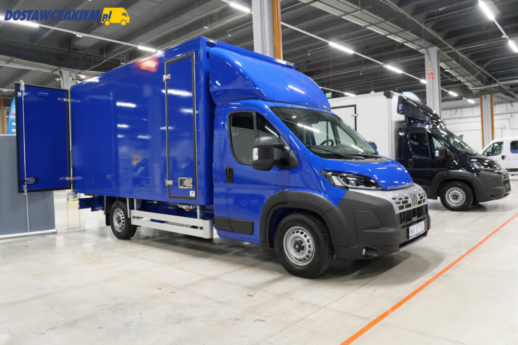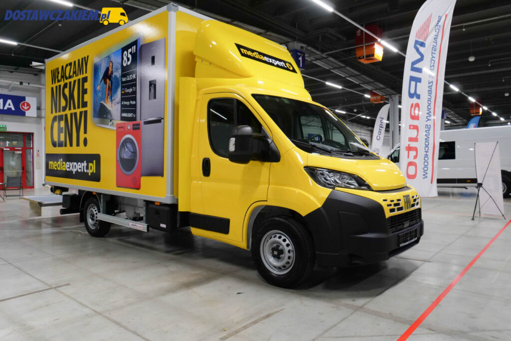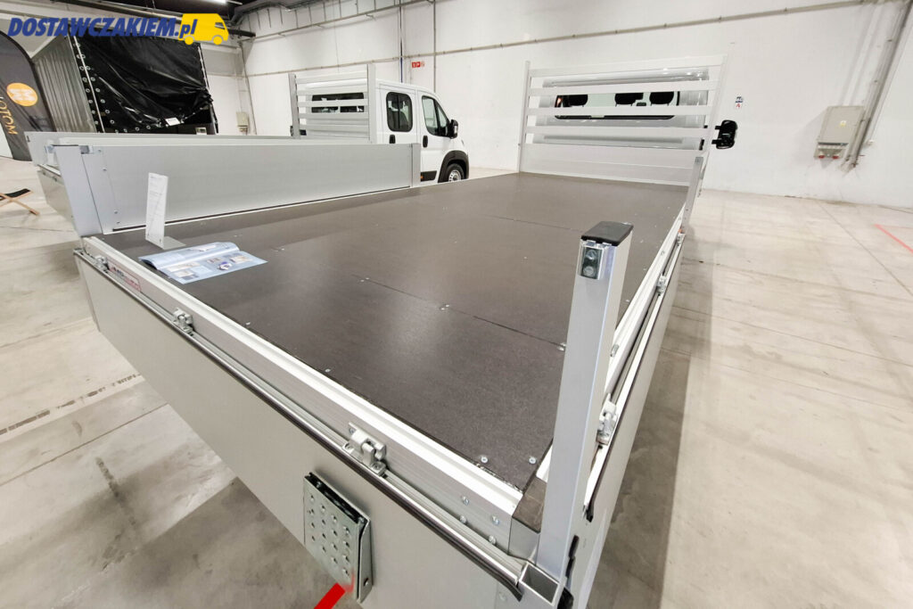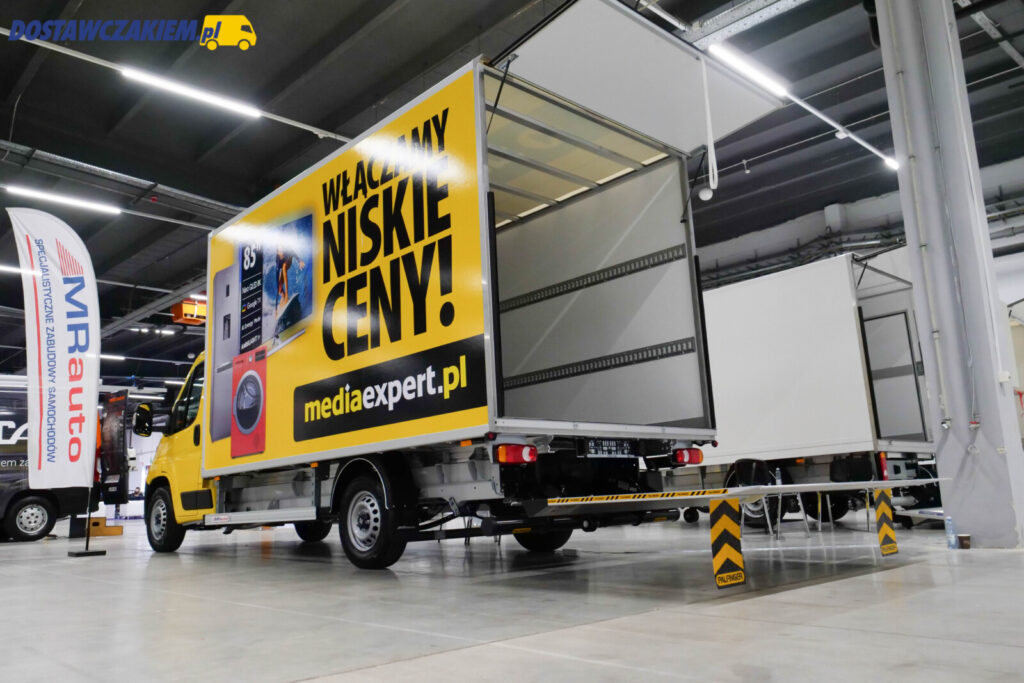 W przypadku otwartych skrzyń na typoszeregu X250 w Kielcach MR Auto pokazało otwartą skrzynię na Ducato o długości wewnętrznej 4850 mm – taka zabudowa świetnie sprawdziłaby się w przedsiębiorstwach produkujących dłuższe elementy.