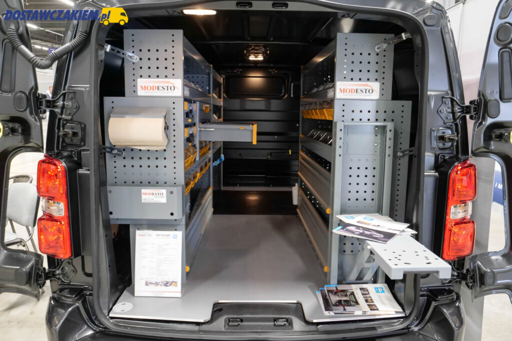 Z kolei firma Modesto pokazała zabudowę serwisową na typoszeregu K0 w postaci Fiata Scudo, ale nie zabrakło też ciekawych adaptacji na bazie najmniejszego z gamy LCV modelu należącego do rodziny Stellantis Pro One.