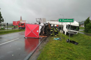 Policjanci ustalili, że kierujący samochodem ciężarowym, 62-letni mieszkaniec województwa lubelskiego, był trzeźwy i nie ucierpiał w zdarzeniu.