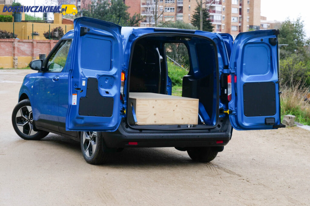 Co ciekawe, ładownia tego modelu oferuje 2,9 m3 i pomieścić powinna do 2 europalet (o jedną więcej niż w poprzedniej generacji Transita Couriera), jednak trzeba pamiętać, że ściana grodziowa wchodzi znacznie w stronę ładowni a tylne skrzydła nie otwierają się do pełnych 180 stopni.