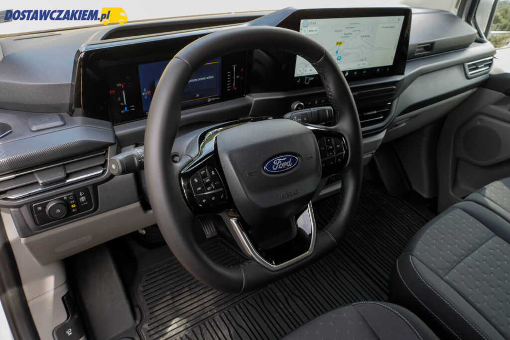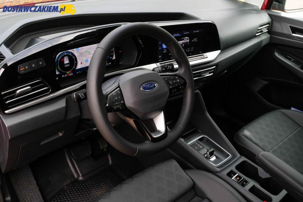Transit Connect PHEV występuje wyłącznie z dwusprzęgłową automatyczną skrzynią biegów o 6. przełożeniach. W serii znajdziemy tam też 10‑calowy cyfrowy zestaw wskaźników oraz centralny dotykowy wyświetlacz.