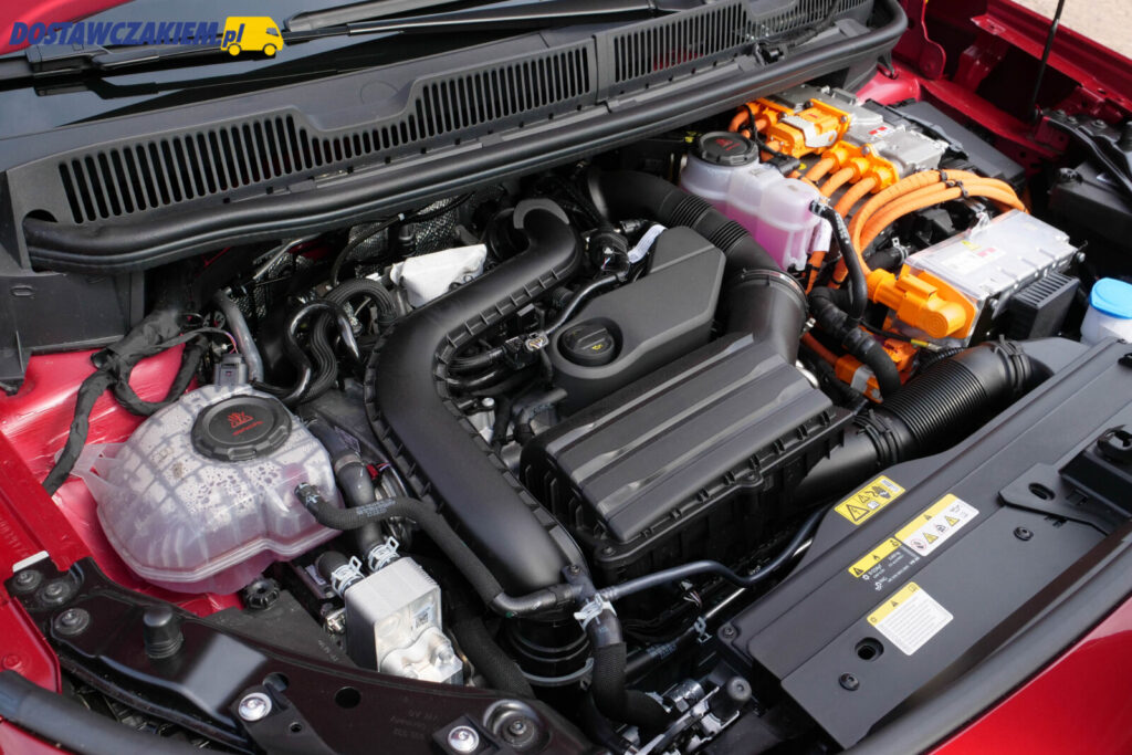 Pod maską znajdziemy zamykany schowek, gdzie zmieści się np. kabel do ładowania czy apteczka. Elektryczny silnik o mocy 136 KM, który generuje do 290 Nm napędza przednie koła i znajduje się pod tym schowkiem.