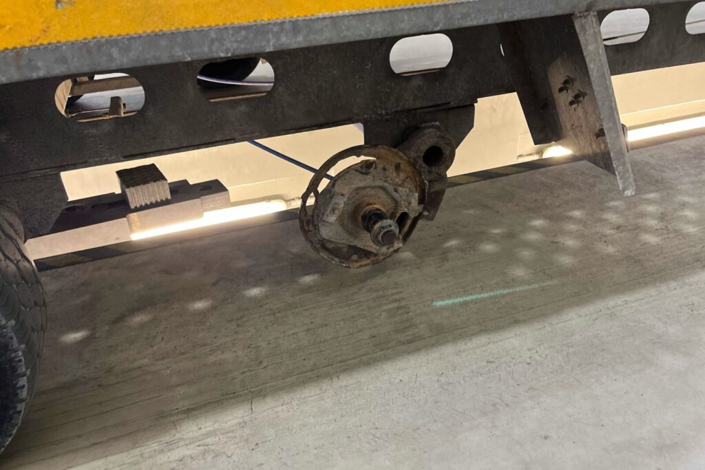 W trakcie weryfikacji stanu technicznego okazało się, że hamulce przyczepy są całkowicie niesprawne a do tego światła nie działają. Ponadto dyszel był poważnie uszkodzony i groził odpadnięciem podczas jazdy. Do tego przyczepa nie miała wszystkich niezbędnych amortyzatorów, no i jednego koła.